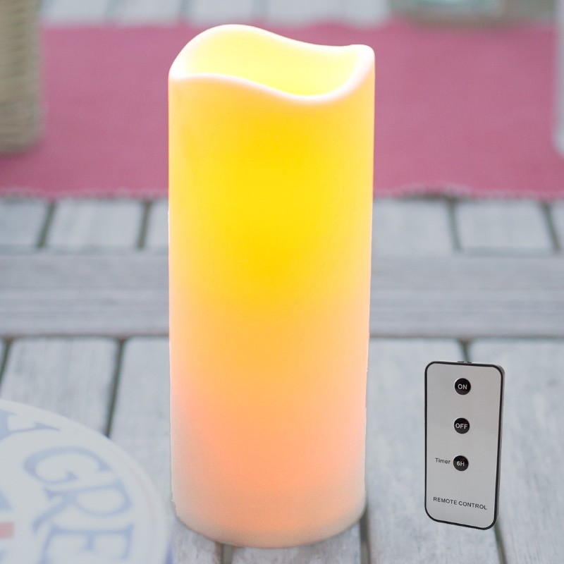 Большая напольная светодиодная свеча из воска с пультом ДУ. Имитирует мерцание настоящей свечи. Используется для декоративного освещения, создания романтической атмосферы.