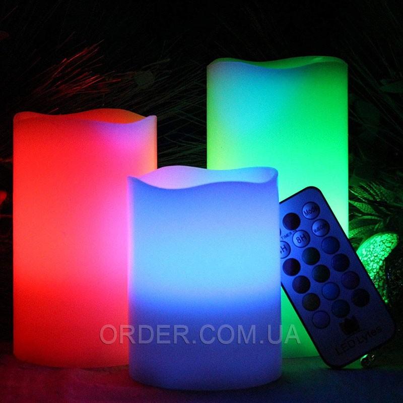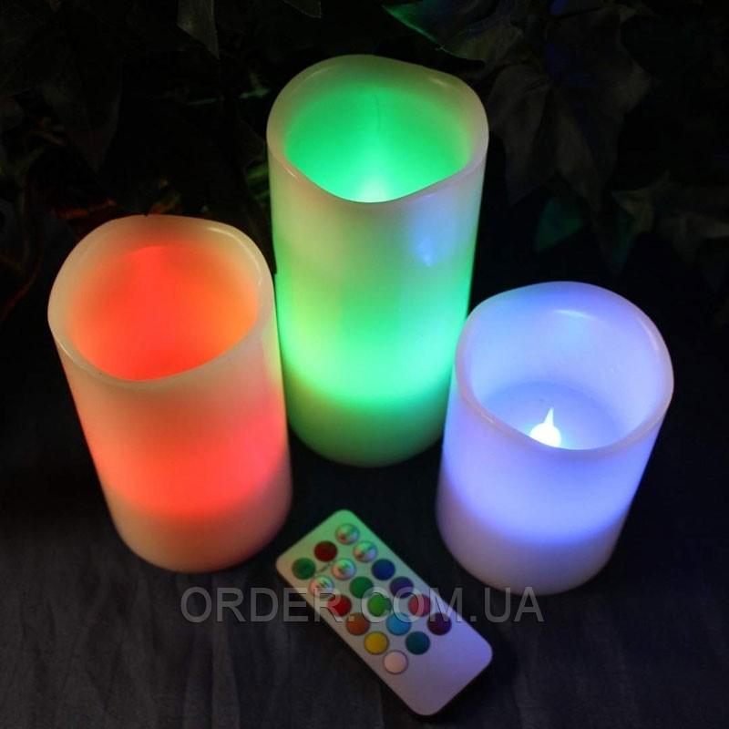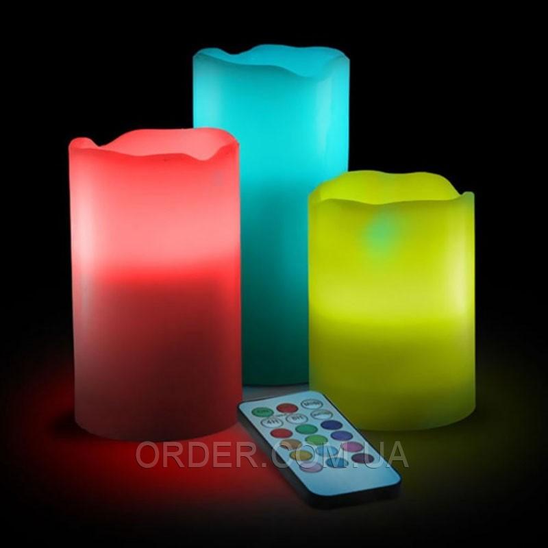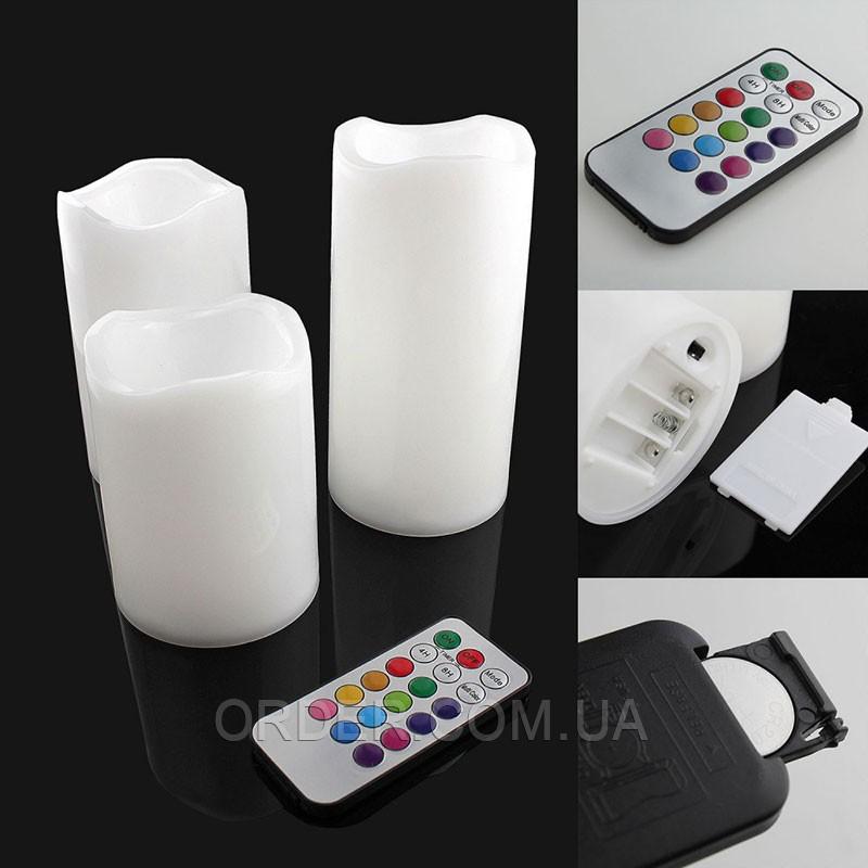 Светодиодные led свечи меняющие цвет с пультом управления набор (набор 3 шт.)