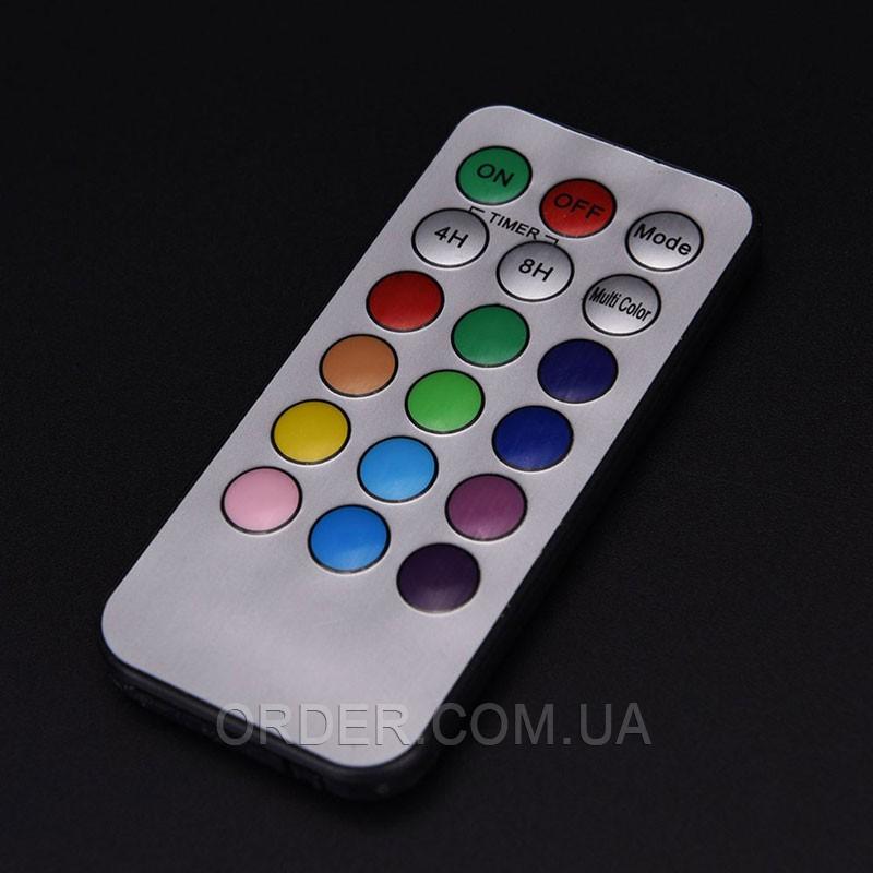 Регулировка с пульта: включение, выключение, выбор цвета (12 вариантов), режим смены цветов, таймер выключения на 4 часа и на 8 часов.