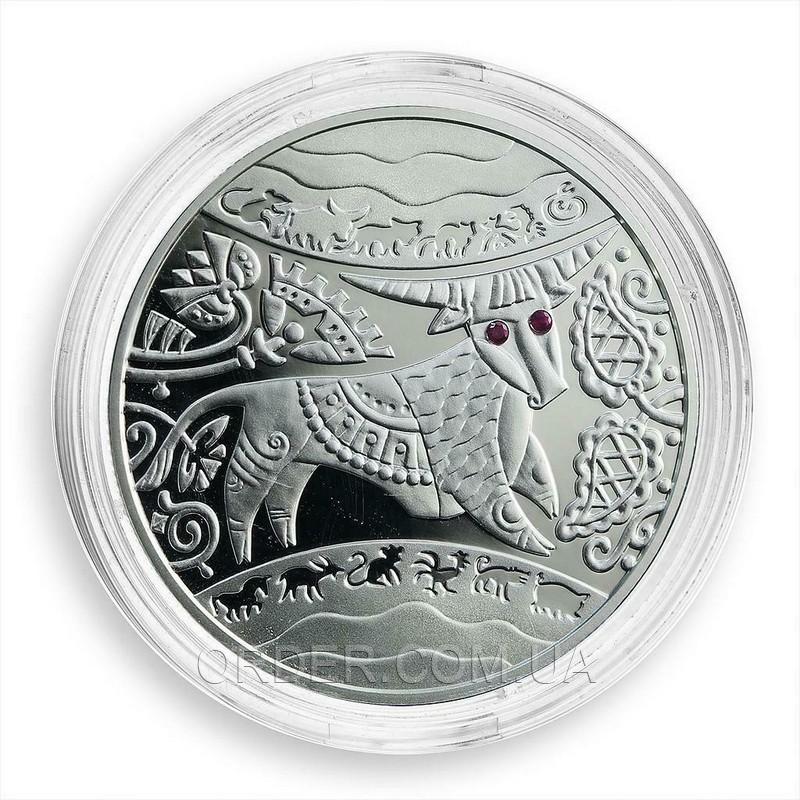 Подарочная серебряная монета "Год Быка". Выпущена Национальным банком Украины в рамках серии "Восточный календарь" и посвящена 1 из 12 животных восточного календаря.