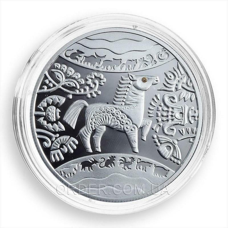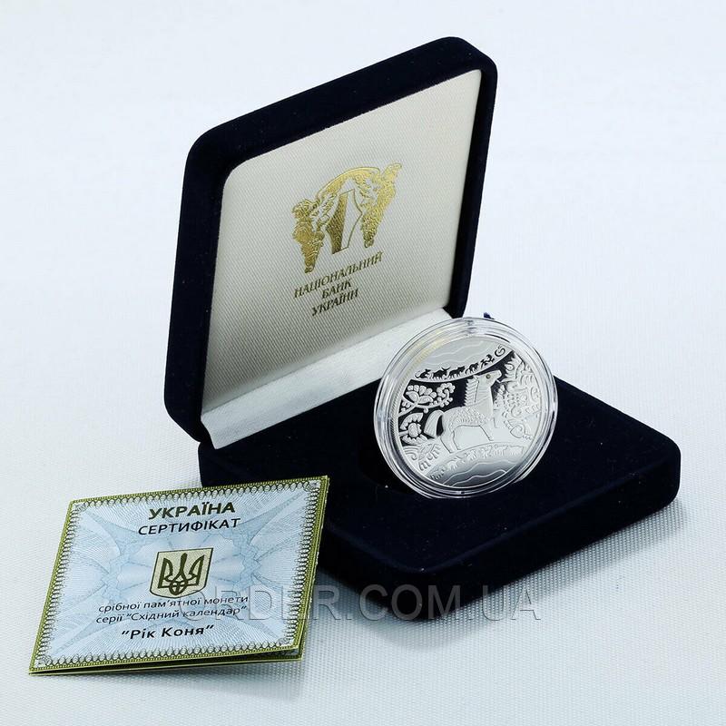 Подарочная серебряная монета "Год Коня". Выпущена Национальным банком Украины в рамках серии "Восточный календарь".