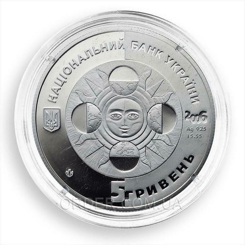 - По кругу монеты - надписи: Национальный Банк Украины (вверху), 5 гривен (внизу) , а также - логотип Монетного двора Национального банка Украины.