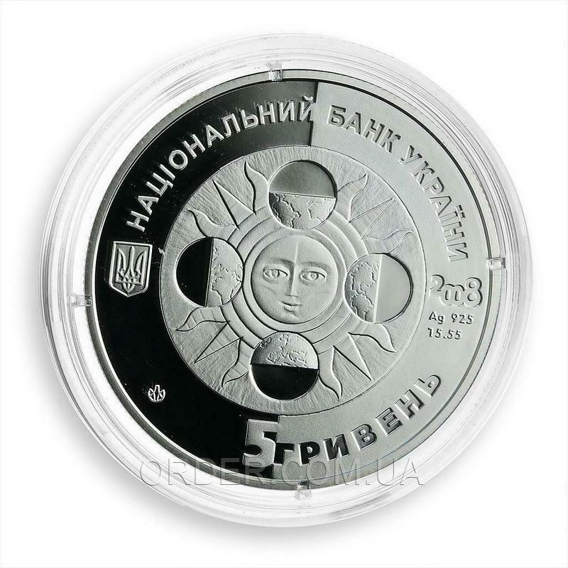 - По кругу монеты - надписи: Национальный Банк Украины (вверху), 5 гривен (внизу) , а также - логотип Монетного двора Национального банка Украины.