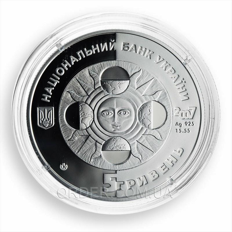 - По кругу монеты - надписи: Национальный Банк Украины (вверху), 5 гривен (внизу) , а также - логотип Монетного двора Национального банка Украины.