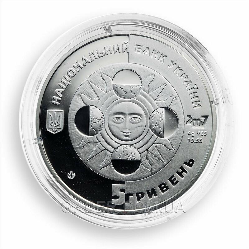 - По кругу монеты - надписи: Национальный Банк Украины (вверху), 5 гривен (внизу) , а также - логотип Монетного двора Национального банка Украины.