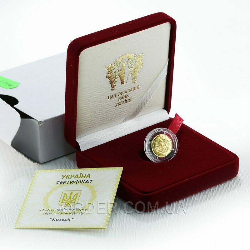 Золотая монета 'Козерог' - это памятная подарочная золотая монета знака зодиака, выпущенная Национальным Банком Украины в рамках серии монет 'Знаки Зодиака'. Монета посвящена созвездию 'Козерог'. К каждой золотой монете прилагается сертификат НБУ, с описанием всех характеристик монеты.