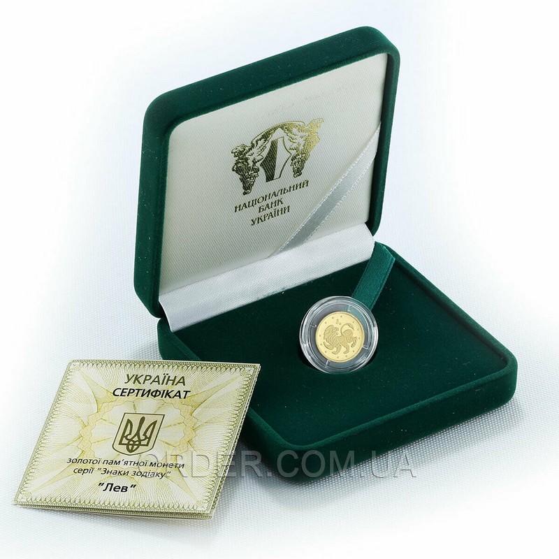 Золотая монета 'Лев' - это памятная подарочная золотая монета знака зодиака, выпущенная Национальным Банком Украины в рамках серии монет 'Знаки Зодиака'. Монета посвящена созвездию 'Лев'. К каждой золотой монете прилагается сертификат НБУ, с описанием всех характеристик монеты.