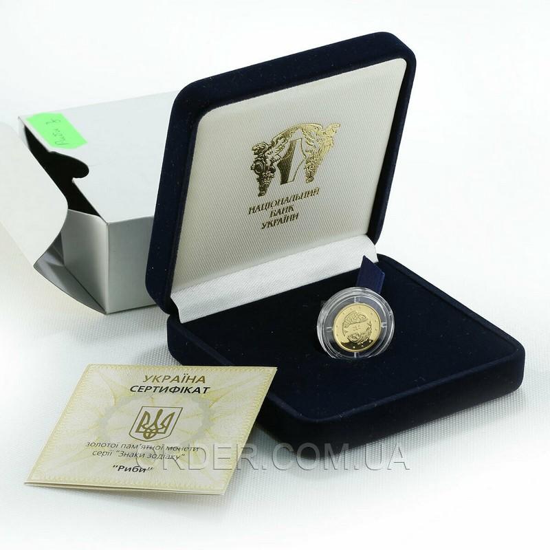 Золотая монета 'Рыбы' - это памятная подарочная золотая монета знака зодиака, выпущенная Национальным Банком Украины в рамках серии монет 'Знаки Зодиака'. Монета посвящена созвездию 'Рыбы'. К каждой золотой монете прилагается сертификат НБУ, с описанием всех характеристик монеты.