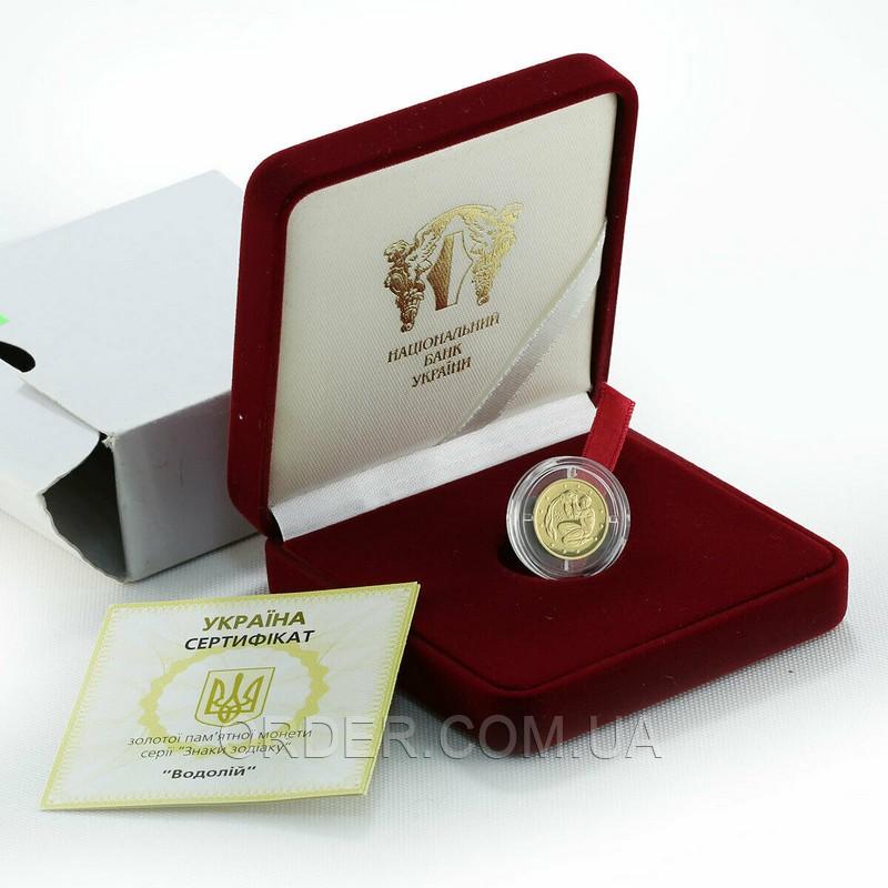 Золотая монета 'Водолей' - это памятная подарочная золотая монета знака зодиака, выпущенная Национальным Банком Украины в рамках серии монет 'Знаки Зодиака'. Монета посвящена созвездию 'Водолей'. К каждой золотой монете прилагается сертификат НБУ, с описанием всех характеристик монеты.